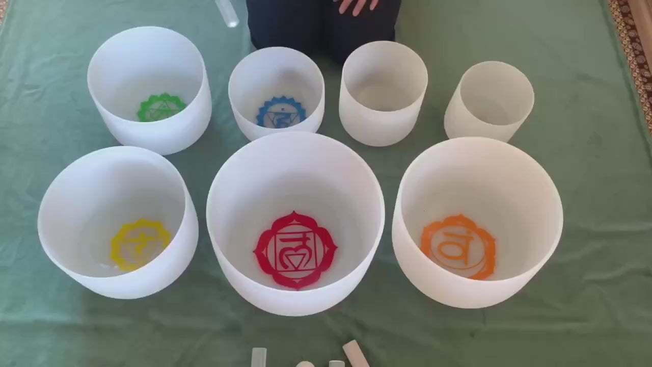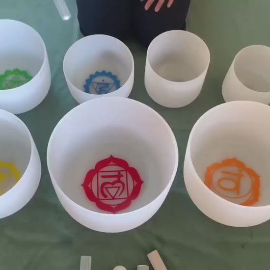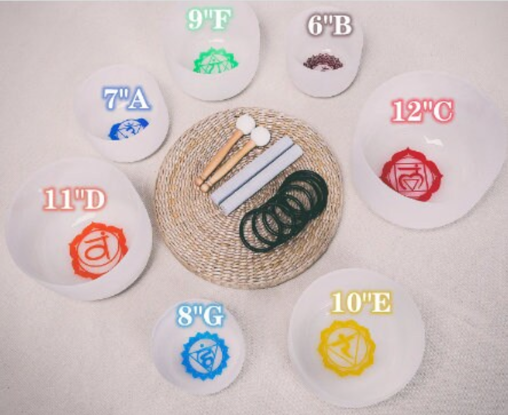 CSB-57 - 6-12 Inch 7pcs Base Chakra Design Crystal Singing Bowl Set